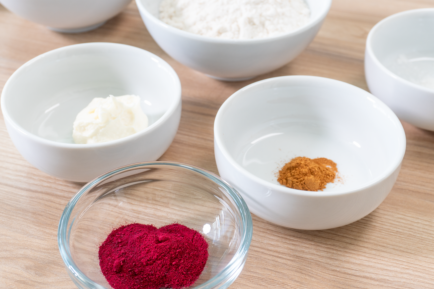 In a mixing bowl, combine the pancake mix, Beet Spreggies, cinnamon powder, and baking powder. Stir until evenly blended.