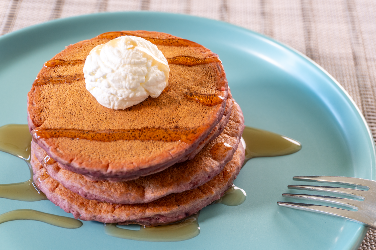 Once cooked, stack the pancakes on a plate and serve warm. Pair them with your favorite toppings like syrup, fresh fruit, or a dollop of whipped cream for a colorful and delicious breakfast.