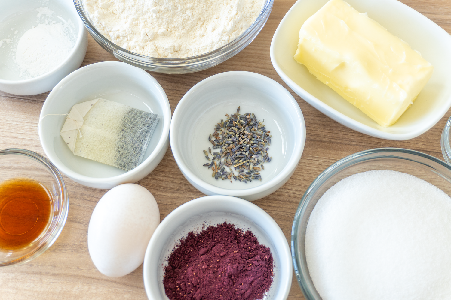 Using a mortar and pestle, grind the contents of one Earl Grey tea bag and 1 teaspoon of lavender flowers until the tea is finely ground and the lavender is broken into smaller pieces. The tea will already be somewhat fine, but breaking up the lavender helps distribute the flavor throughout the dough.