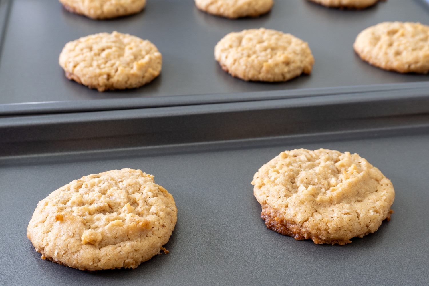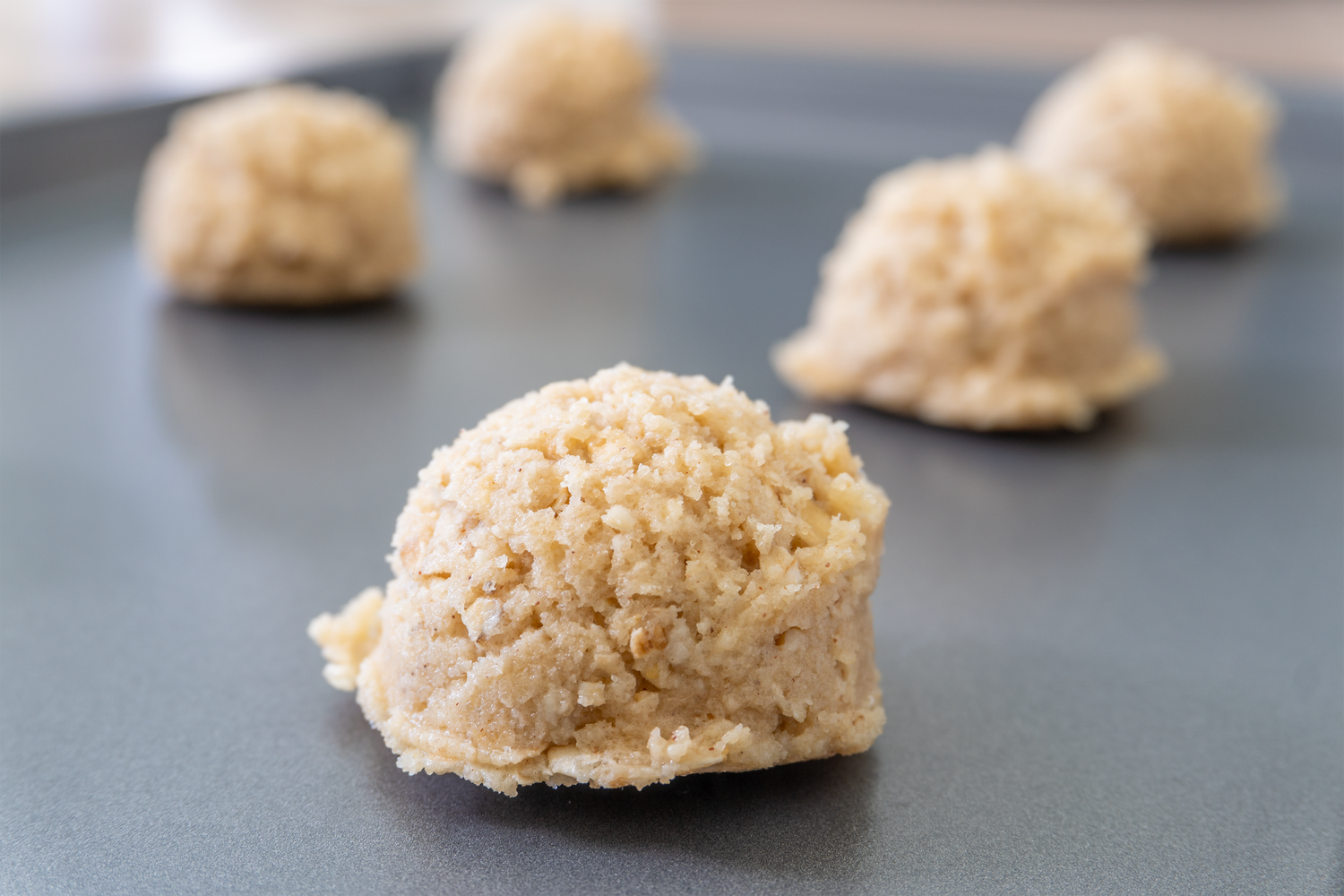 Using a 2-tablespoon cookie scoop, drop portions of dough onto a lined or greased cookie sheet. This should yield about 12 small cookies, but you can adjust the size as needed.