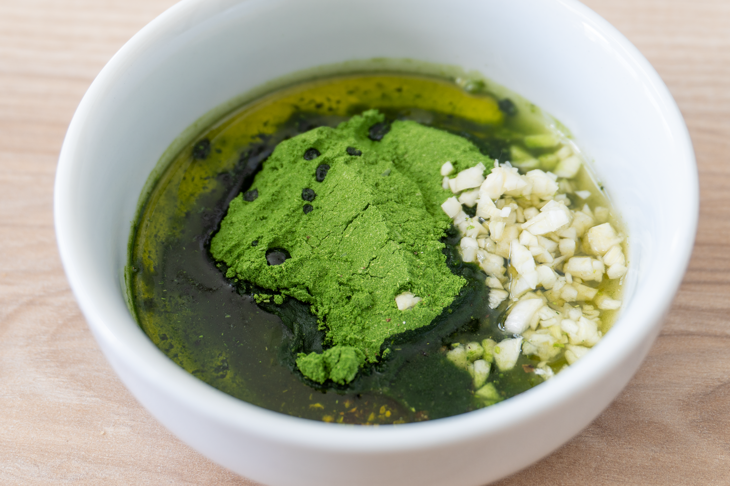 In a small bowl, mix 1 tablespoon Spinach Spreggies, 1 teaspoon minced garlic, 1/2 tablespoon apple cider vinegar, 1/2 tablespoon olive oil, and 1/4 teaspoon freshly ground black pepper. Stir until it forms a smooth paste. If it seems too dry, add a little more olive oil or vinegar; if it’s too thin, sprinkle in more Spinach Spreggies. The vinegar will taste strong at first but will balance out once paired with the cheese.