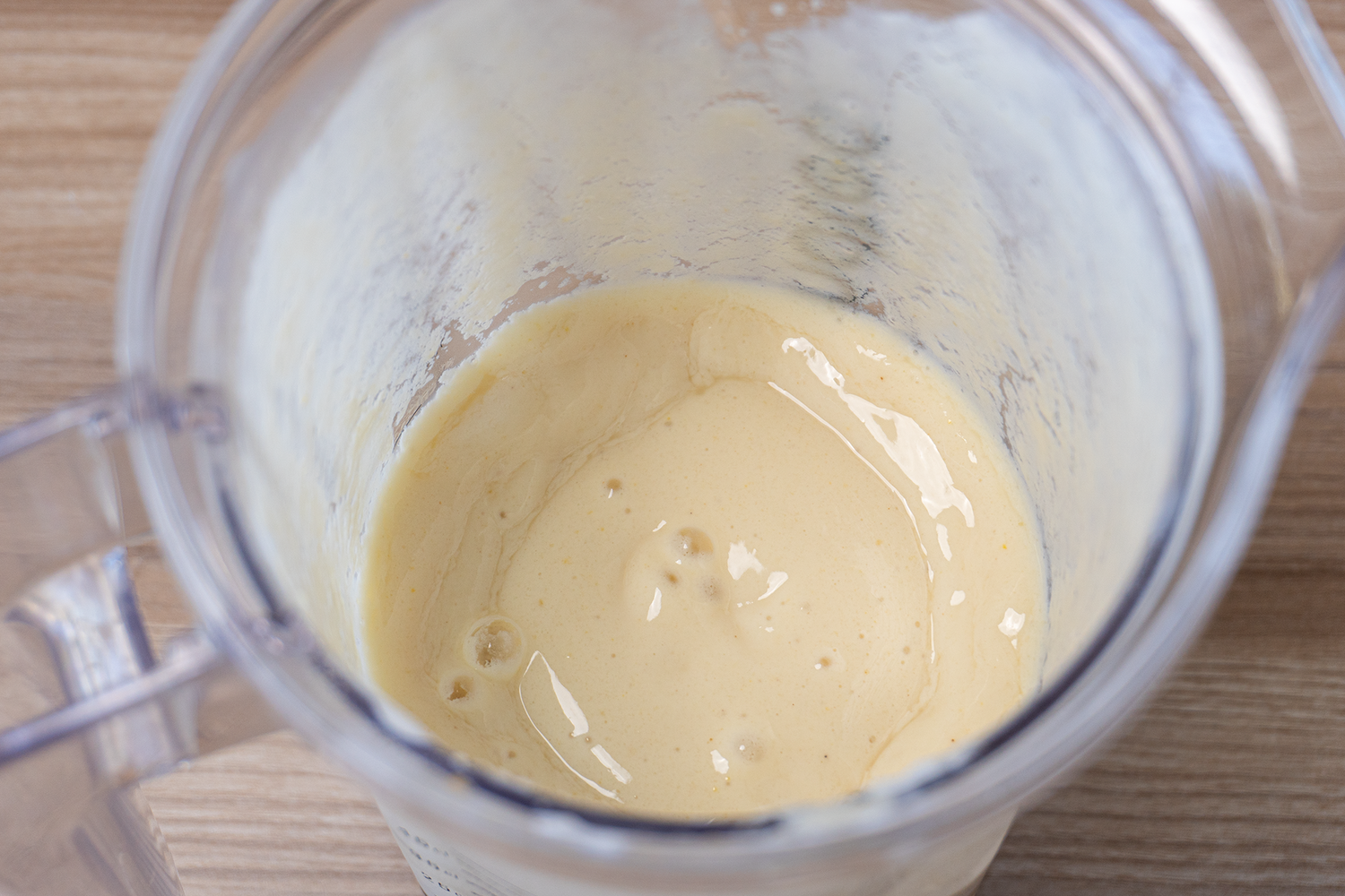 Blend everything together until the ice is fully crushed and the mixture is smooth and creamy with no chunks remaining.