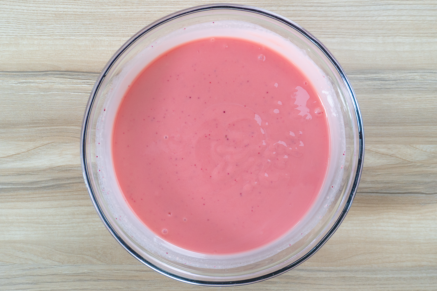 Continue whisking for several minutes until the pudding begins to thicken. The mixture should have a creamy, smooth texture and a vibrant pink hue.